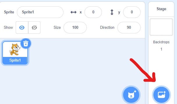 Untuk menambahkan sprite, klik menu berbentuk lingkaran dengan logo kepala kucing di pojok kanan bawah pada Panel Sprite